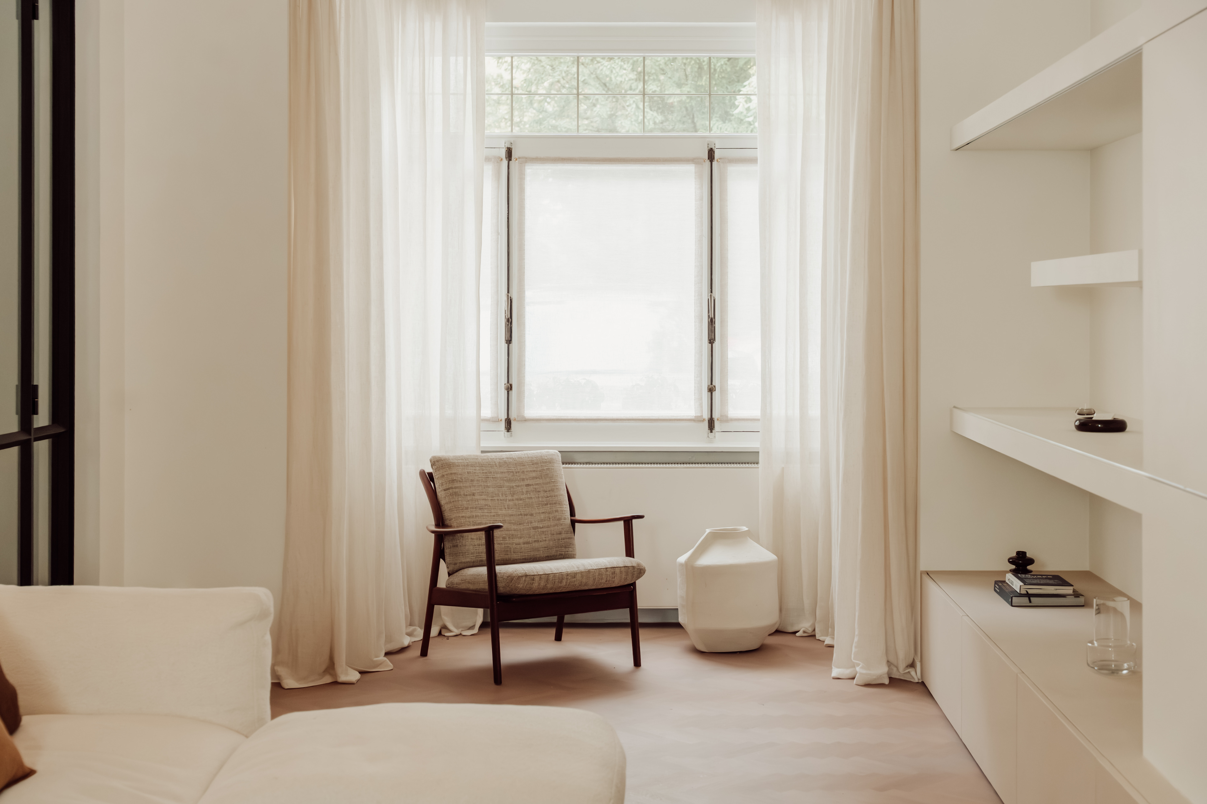 Warme, tastbare materialen, zachte natuurlijke tinten en subtiele texturen brengen licht, rust en evenwicht in de ruimte.